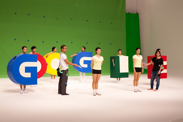 Then, a team of six professional actors were cast, one for each of the Google letters! We also worked with two professional calisthenics assistants from the official radio calisthenics TV program to help train the actors.