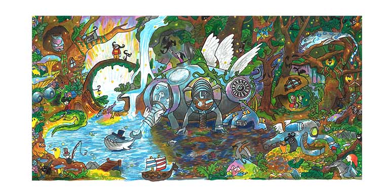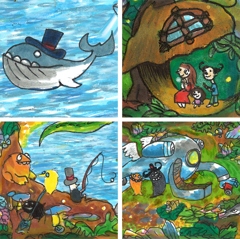 We quickly lost count of all the delightful elements of Audrey’s doodle. So in the spirit of this year’s theme, we asked Audrey to spend a day with the doodlers to turn her illustration into a moving animation. As an animator and director for a day, she made sure we twinkled each light and cleaned the water just right and took extra care for the illustration’s dragons—about whom she is also writing a novel.