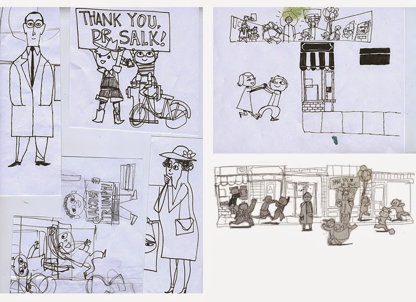 For the art, doodler Mike Dutton wanted to focus on those that benefited from this scientific milestone. Adults and children alike are susceptible to the disease, but children were especially at risk due to how the disease was transmitted.
