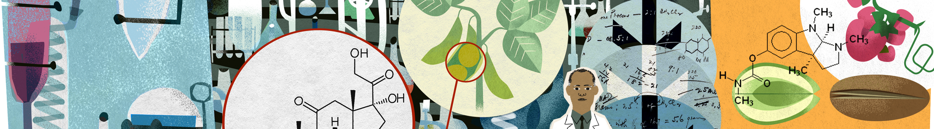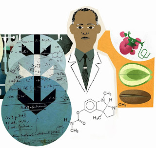 As I read more about his work, I became fascinated with his process in the specific field of organic chemistry, and how he discovered ways to take rare and exotic components and synthesize them or discover alternate organic substances in place of more cost-prohibitive resources. Yep, that's a mouthful! So here are two key examples: His most well known triumph was the synthesis of the alkaloid, physostigmine, found in the african calabar bean, which led to a more readily available treatment of ailments such as glaucoma and Alzheimer's Disease. He also pioneered many uses from the soybean and soybean oil, developing a better process for obtaining cortisone to treat arthritis or to aid the body in the receiving of organ transplants.
